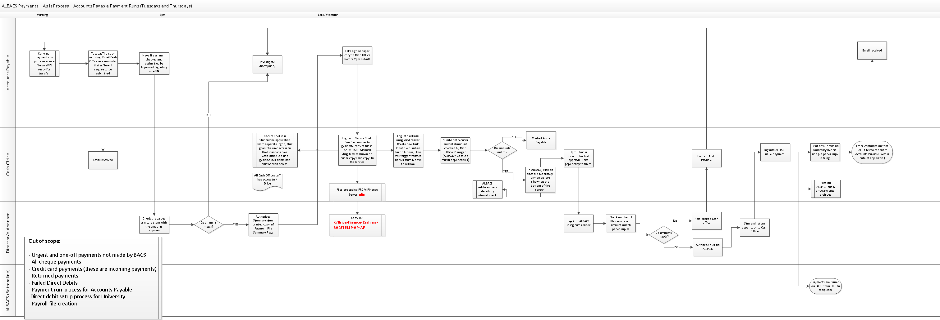 1. Tuesday/Thursday BACS payment runs created by Accounts Payable.